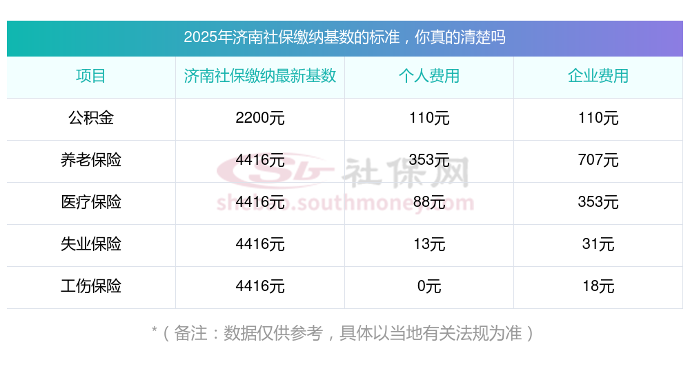 一、据新社通小编了解到,职工上一年度月平均工资是社保缴费基数确定的重要基础,之后结合当地社会平均工资60%-300%的上下限进行调整。 目前,济南社保缴费基数为:4416.00,个人费用约为:353.28元,企业费用约为:706.56元。