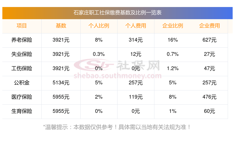 2024-2025年石家庄社保缴费标准最新是多少?据新社通app获悉,社保是为了保证劳动者在年老、失业、患病、工伤、生育而减少劳动收入时给予经济补偿的一项优惠方案。那你知道石家庄社保缴费标准是什么样的吗?看看你的社保需要缴纳多少钱?下面随新社通app小编一起来看看石家庄社保缴费标准详情。