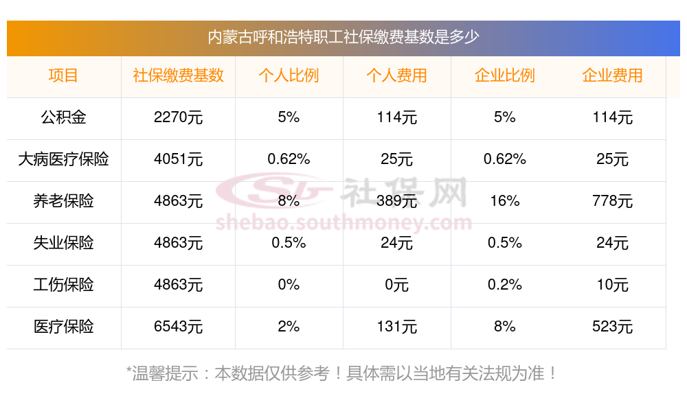 据新社通app显示,内蒙古呼和浩特社保缴费基数最新标准,(社保最低一个月要交多少钱)内蒙古呼和浩特社保费用如下: