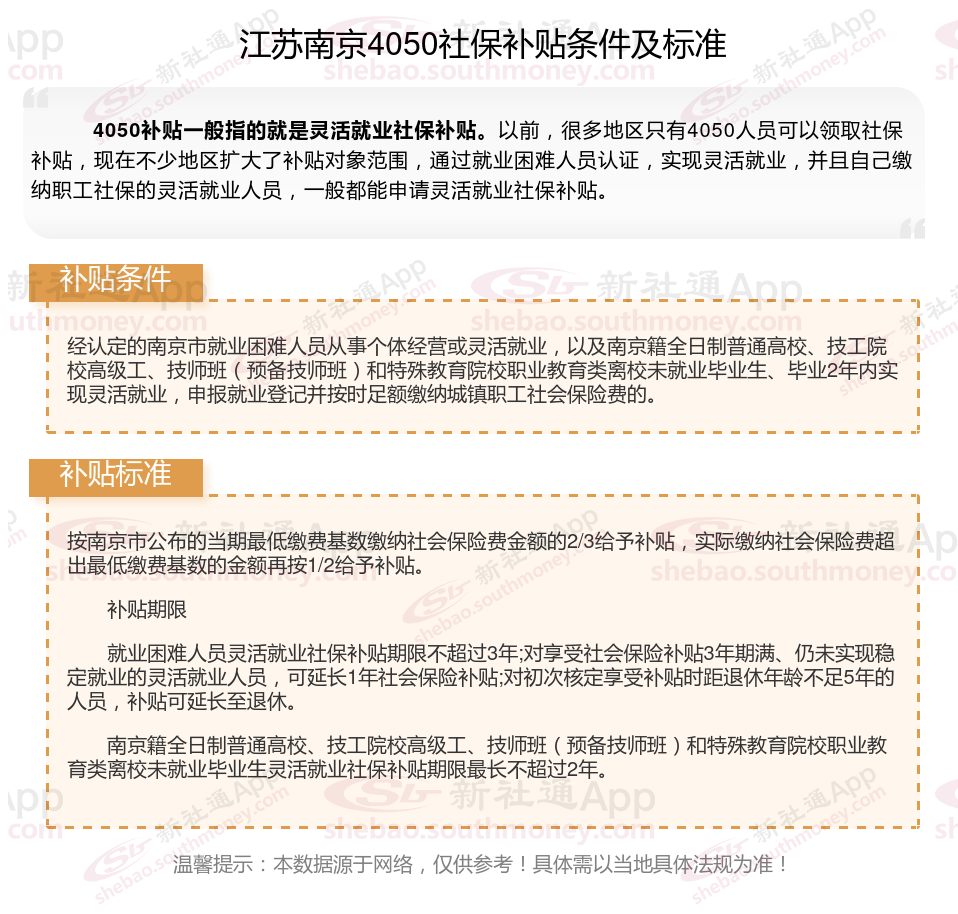 以上就是江苏南京4050灵活就业社保补贴的相关内容,欢迎关注新社通/下载新社通APP了解更多五险一金专业资讯。