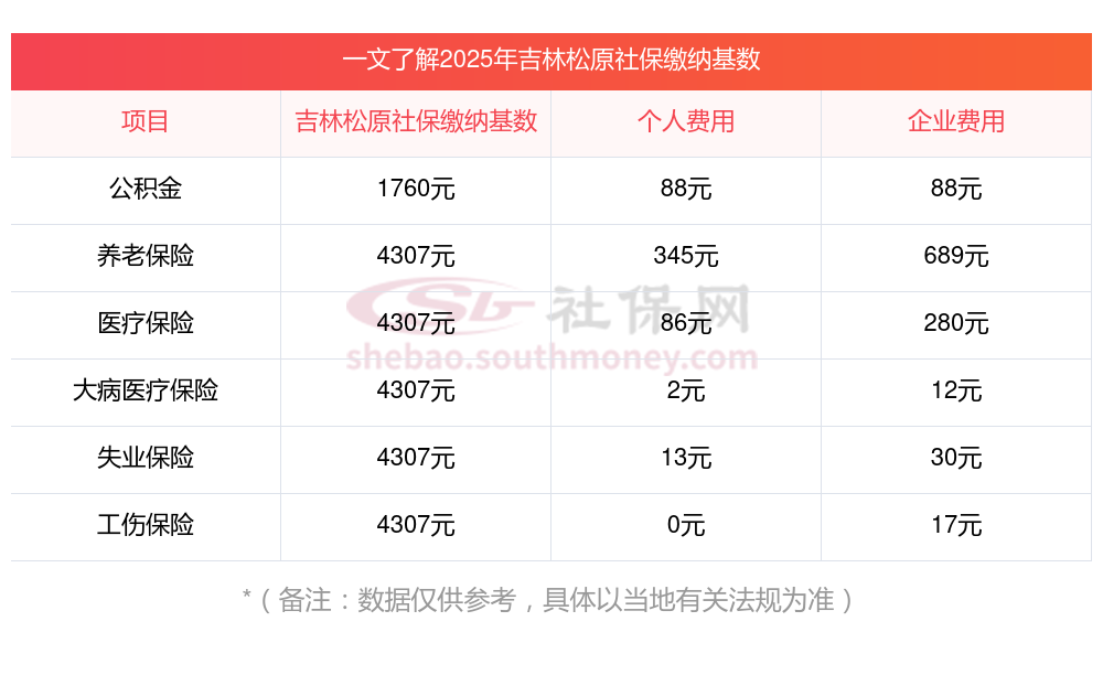 一、据新社通小编了解到,社保缴费基数主要依据职工上一年度月均工资来确定,同时要结合当地社会平均工资在60%至300%之间的上下限标准进行调整。 目前,吉林松原社保缴费基数为:4307.10,个人费用约为:344.568元,企业费用约为:689.136元。