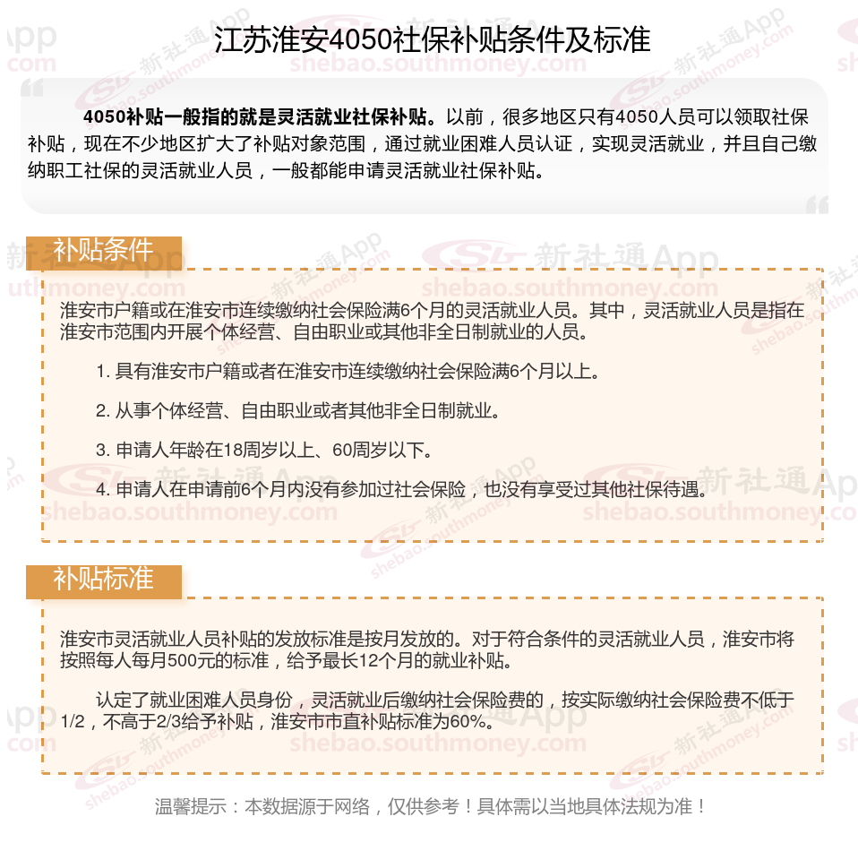 二、江苏淮安4050社保补贴标准及条件2025年最新消息