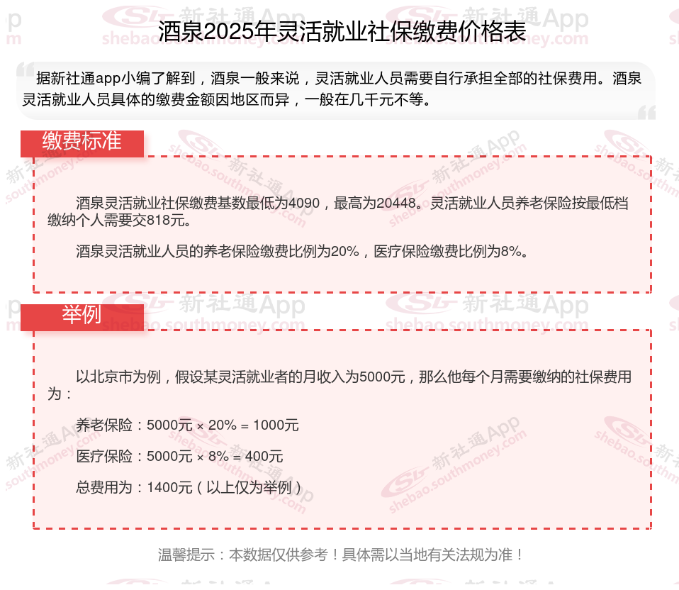二、酒泉2024年灵活就业社保缴费基数及比例最新消息