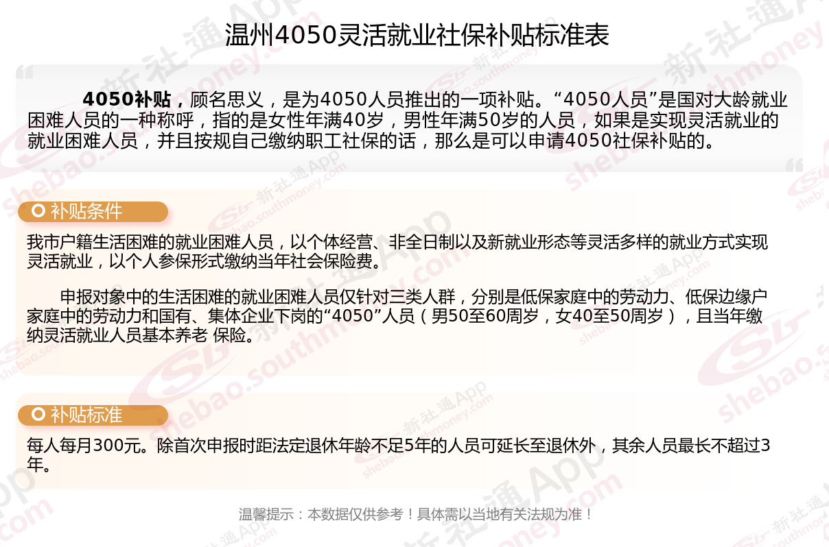 二、温州4050社保补贴多少钱一个月?温州4050社保补贴2025年最新标准是多少?