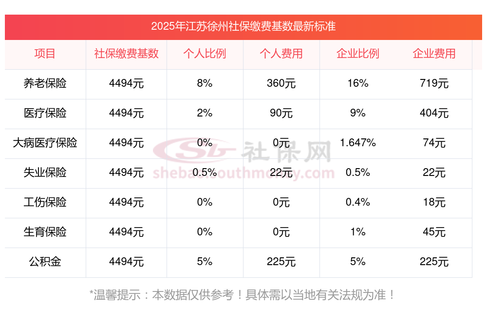 一、据新社通app-查阅了解到,社保基数的确定,依据职工上一年1月到12月期间,所有工资性收入所得的月平均金额,此金额用于计算社会保险费缴纳的工资基数。 目前该江苏徐州社保的缴费基数为:4494.00,个人费用约为:359.52元,企业费用约为:719.04元。