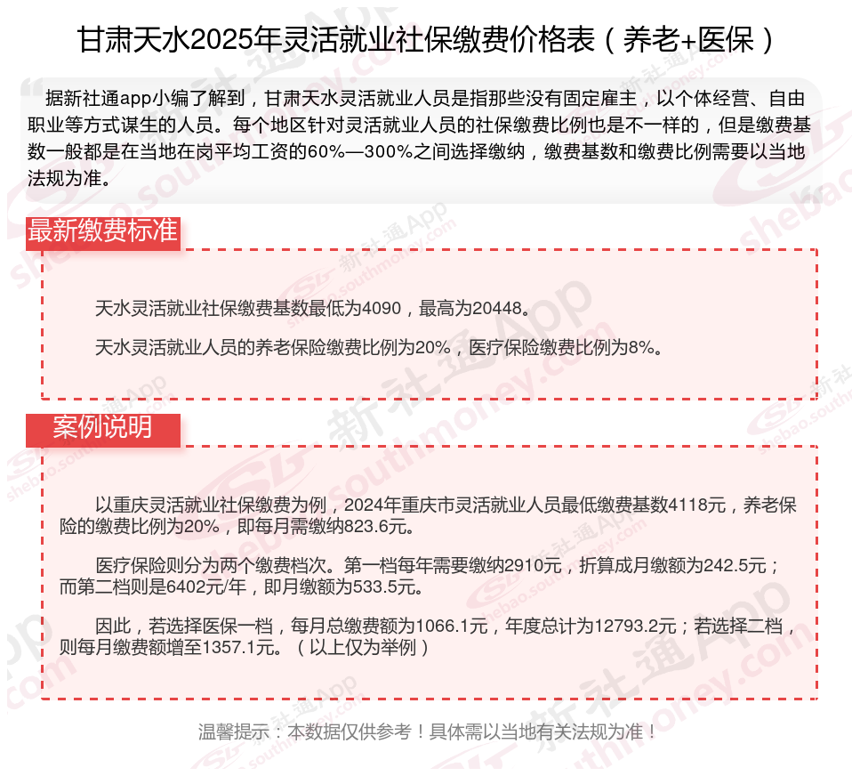 一、2025年甘肃天水灵活就业社保缴费标准,灵活就业社保多少钱一个月?