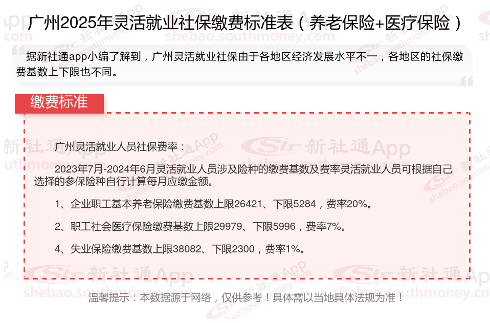以上就是带来广州灵活就业社保缴费标准相关知识,内容及数据仅供参考,希望对你有帮助,欢迎关注/下载新社通app解锁更多社保专业资讯。