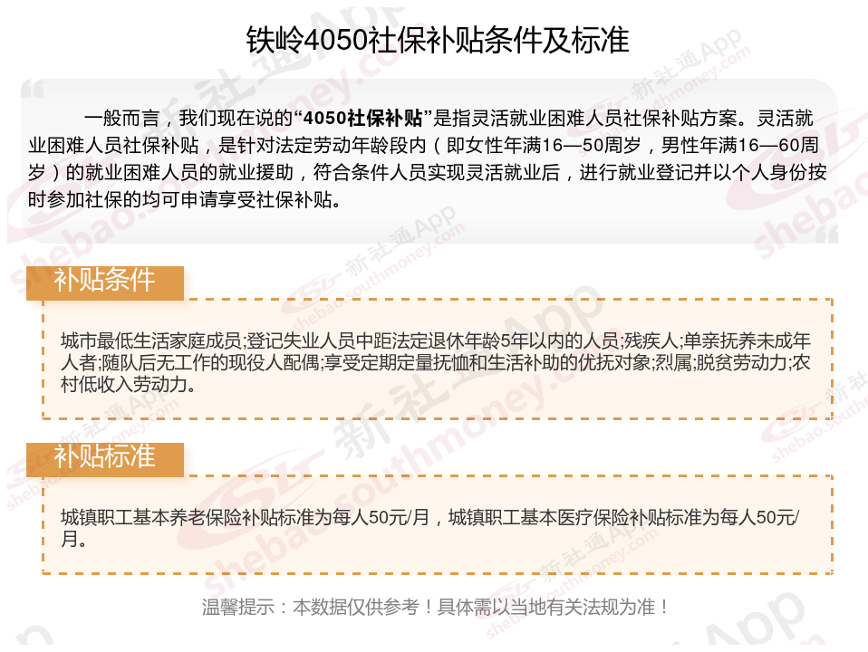 以上就是铁岭4050灵活就业困难人员社保补贴的相关内容,欢迎关注新社通/下载新社通APP了解更多五险一金专业资讯。