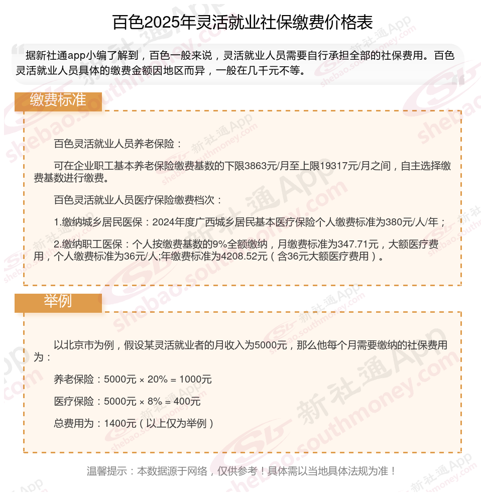 以上就是带来百色灵活就业社保缴费标准相关知识,内容供参考,希望对你有帮助,欢迎关注/下载新社通APP解锁更多社保专业资讯。