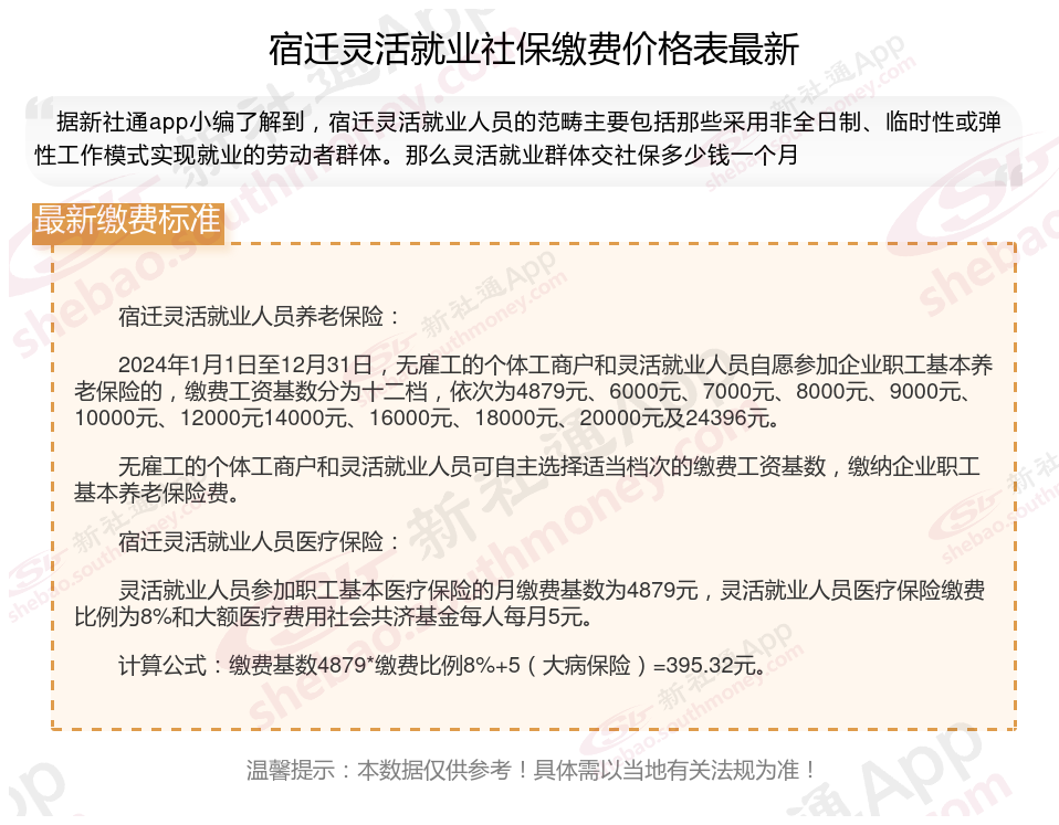以上就是带来宿迁灵活就业社保缴费标准相关知识,内容及数据仅供参考,希望对你有帮助,欢迎关注/下载新社通app解锁更多社保专业资讯。