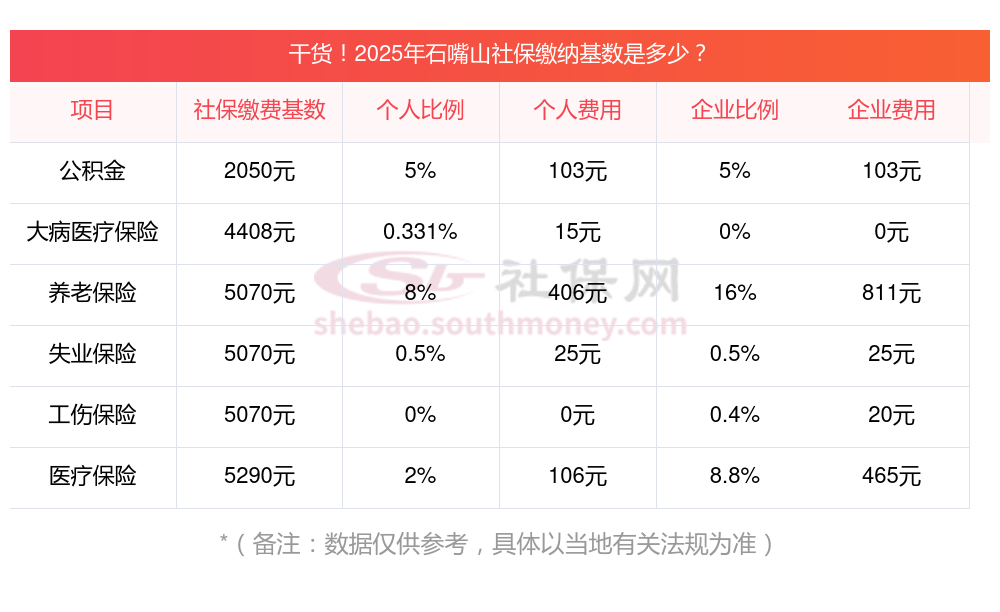 石嘴山职工社保缴费基数2024-2025年最新标准,如下: