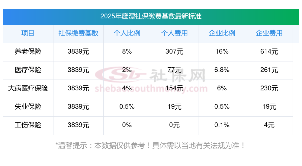 2025年鹰潭社保缴费基数是多少?2025年鹰潭社保交多少钱?社保的缴费金额取决于多个因素,包括缴费基数、缴费比例以及所在地的具体法规等。