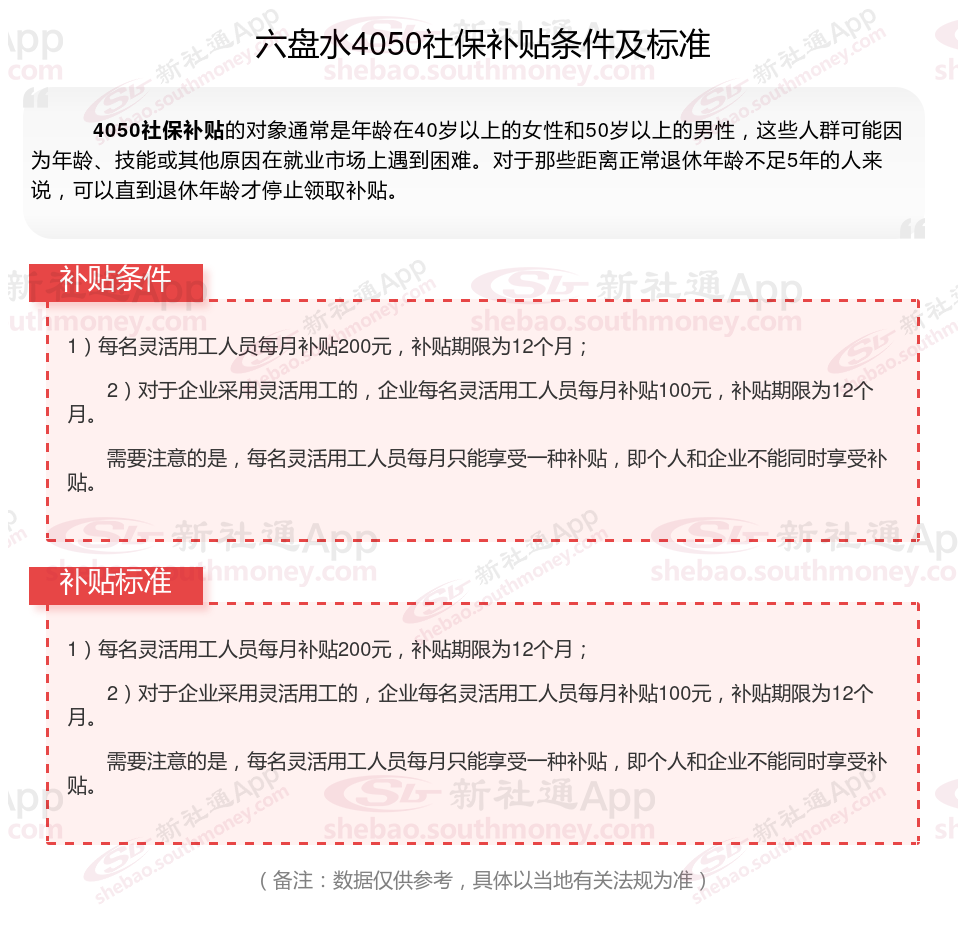二、2025年六盘水4050社保补贴标准,最新领取条件来了