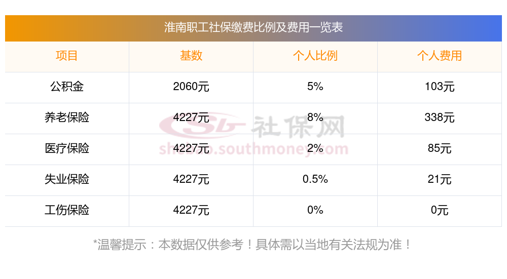 淮南社保缴纳比例是多少?2025年淮南社保缴费多少钱?下表是2024-2025年淮南社保费用明细参考,新社通app-社保缴费查询工具提供的最新数据如下: