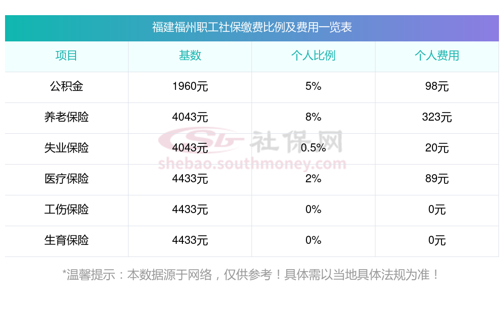 福建福州职工社保缴费基数是多少钱一个月?职工社保缴纳标准