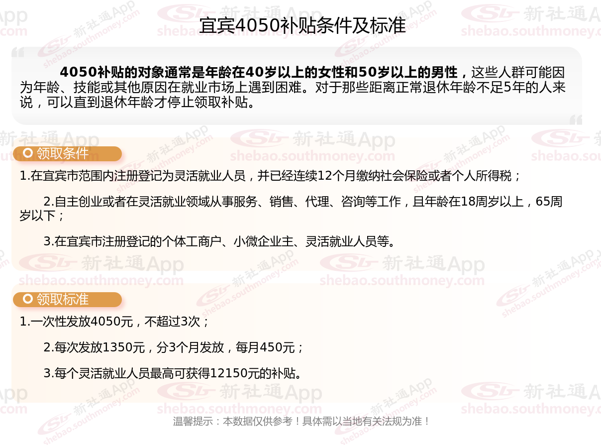 二、宜宾4050社保补贴标准及条件2025年最新消息