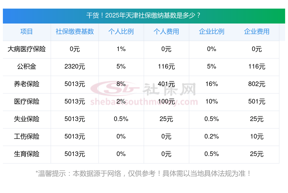 社保缴费金额的大小由缴费基数、缴费比例,以及所在地区在社保方面的具体法规等因素所确定。那么天津社保每个月要交多少钱?,如下:
