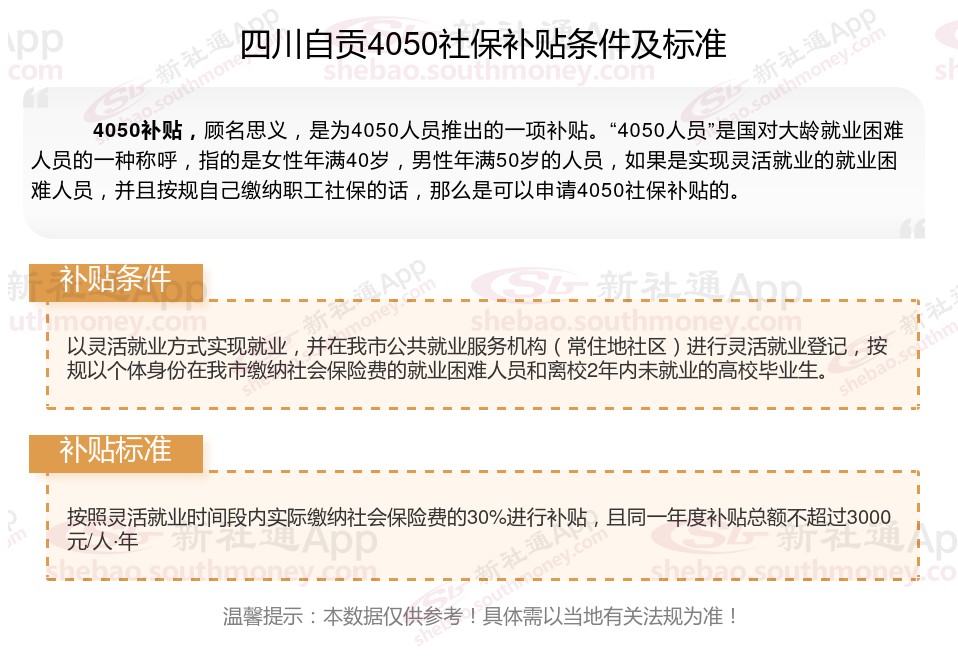 一、2025年四川自贡4050社保补贴标准,最新领取条件来了