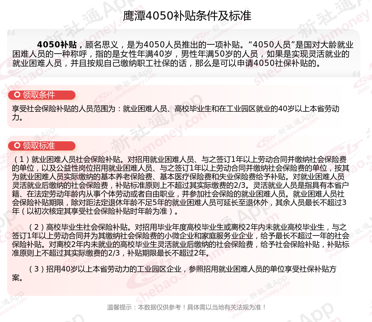 二、鹰潭4050社保补贴新规2025年最新标准,2025年鹰潭4050社保补贴条件是什么?