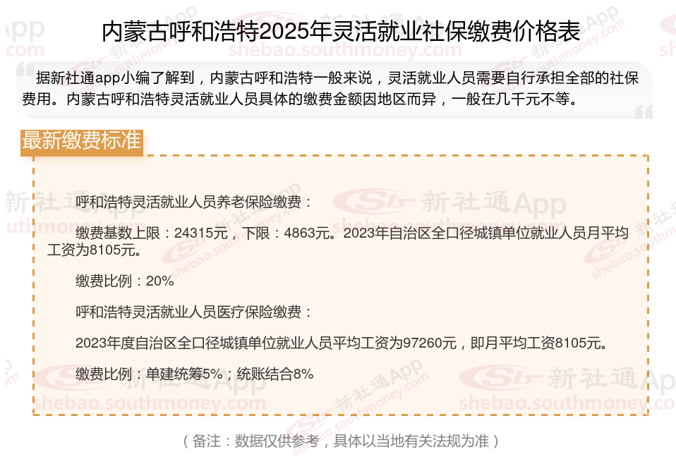 以上就是内蒙古呼和浩特灵活就业社保缴费的全部内容,数据及内容供参考!希望对你有帮助,欢迎关注新社通app解锁更多社保专业资讯。