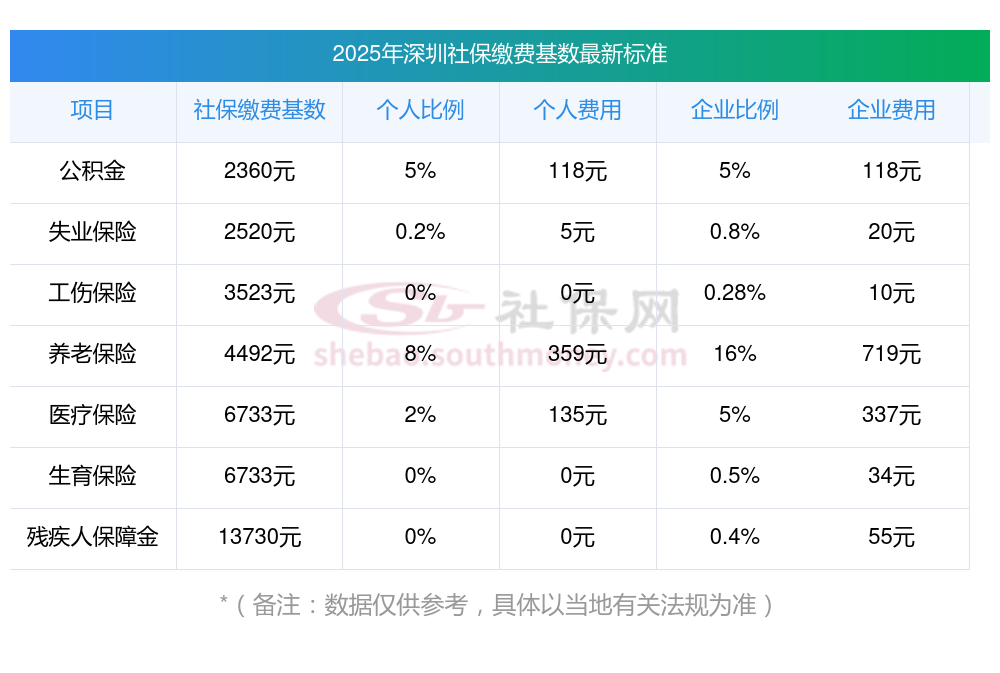 2025年深圳社保缴费基数是多少?2025年深圳社保交多少钱?确定社保缴费金额的要素有缴费基数、缴费比例,还有当地依据实际需求制定的具体法规。