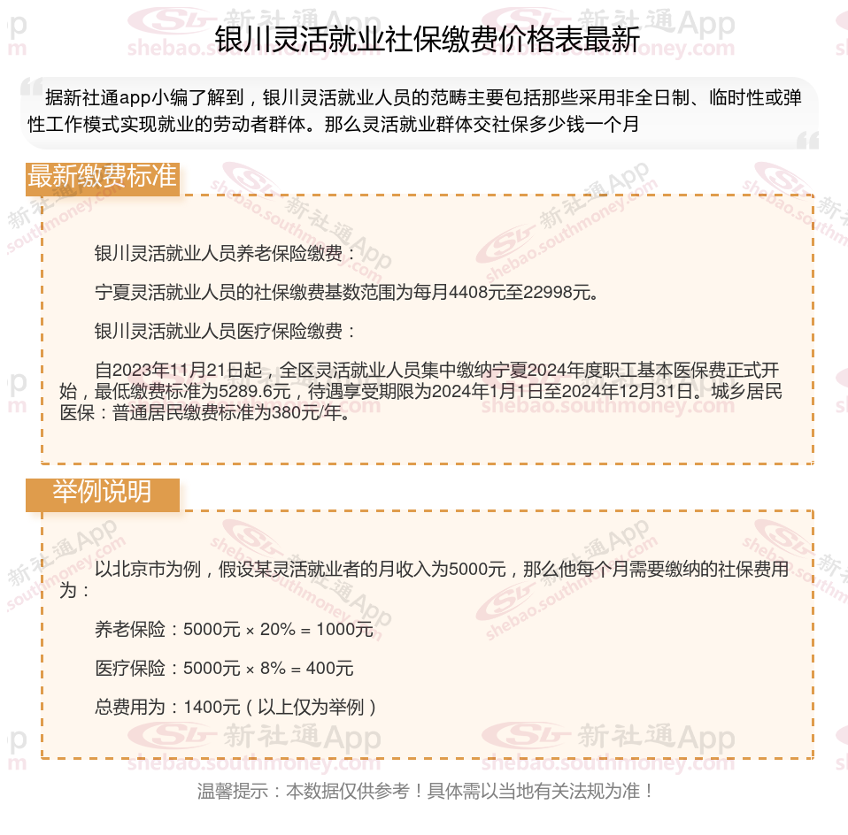 一、2024年银川灵活就业社保缴费基数、比例最新消息
