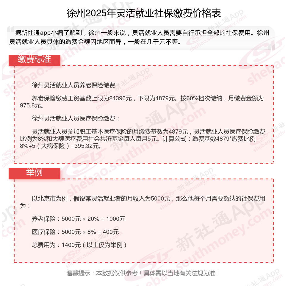 对于灵活就业者来说,社保缴纳是一个非常重要的问题。那么,2025年徐州灵活就业社保怎么交?一个月要交多少呢?领取待遇如何计算的?接下来随新社通APP小编一起了解徐州灵活就业社保缴费具体详情吧。
