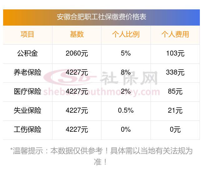 (安徽合肥社保最低一个月要交多少钱)安徽合肥社保费用明细最新如下: