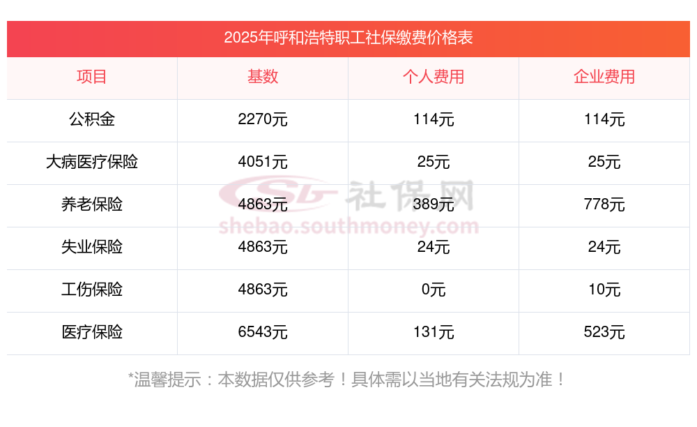多个条件共同确定社保的缴费金额,其中包含缴费基数、缴费比例,以及当地制定的相关法规。接下来看看,2025年呼和浩特社保比例是多少,呼和浩特社保2025年缴费标准一览,如下: