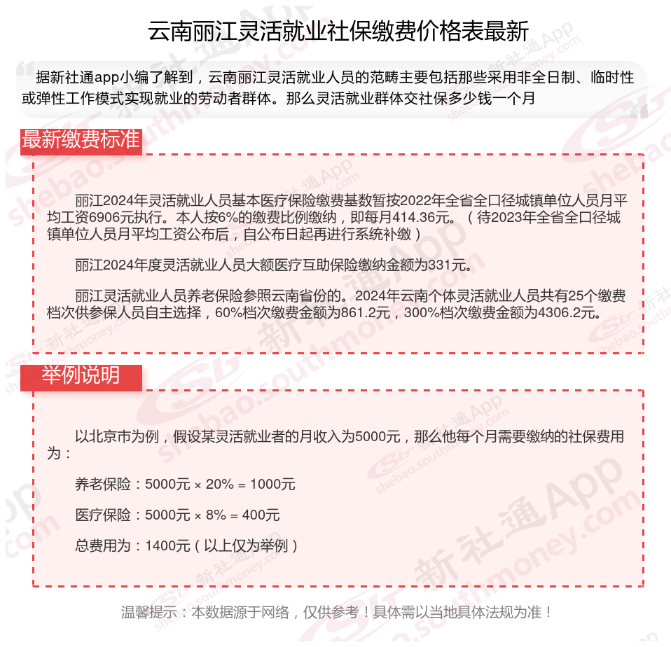 以上就是云南丽江灵活就业社保缴费的全部内容,数据及内容供参考!希望对你有帮助,欢迎关注新社通app解锁更多社保专业资讯。