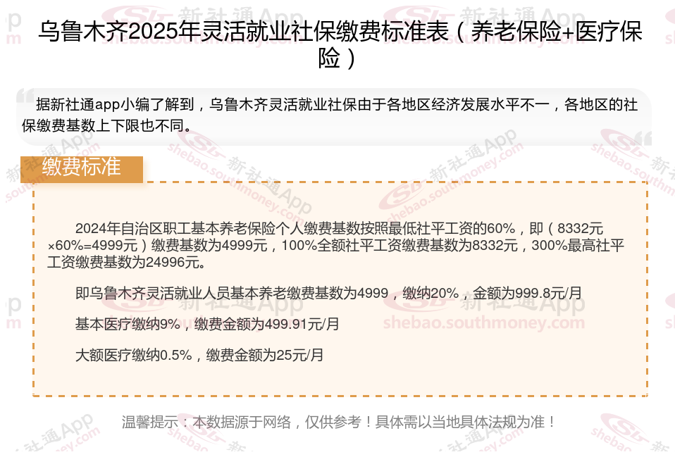 随着经济的发展和社会的进步,灵活就业人员越来越多,但是很多人不知道如何缴纳社保。本文将介绍2025年乌鲁木齐灵活就业人员社保缴费基数及如何缴纳社保,能领取多少钱,帮助大家更好地了解灵活就业社保,随着新社通APP小编一起了解乌鲁木齐灵活就业社保缴费最新资讯吧。