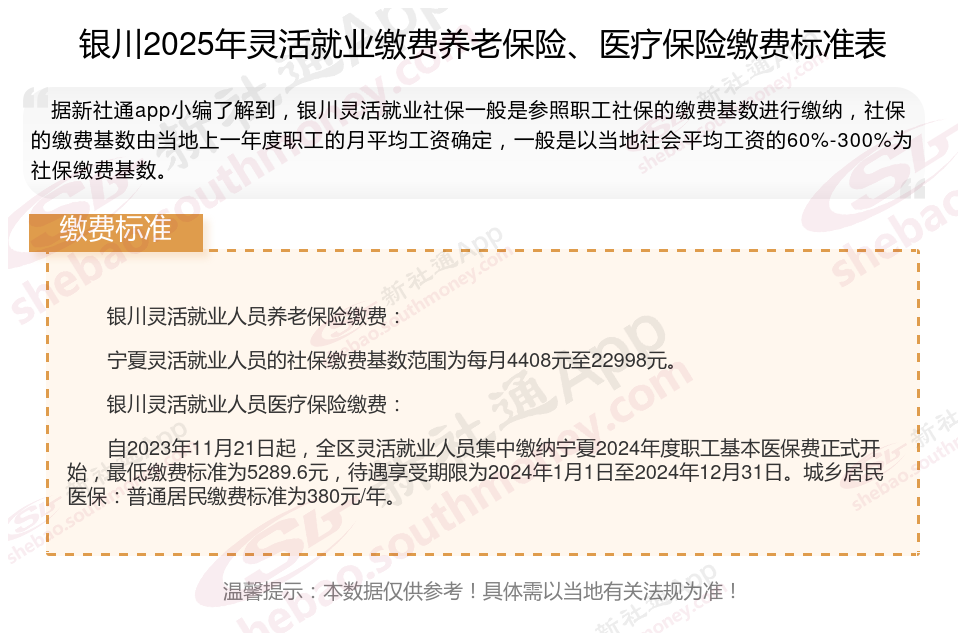 一、2025年银川灵活就业社保缴费标准,灵活就业社保多少钱一个月?