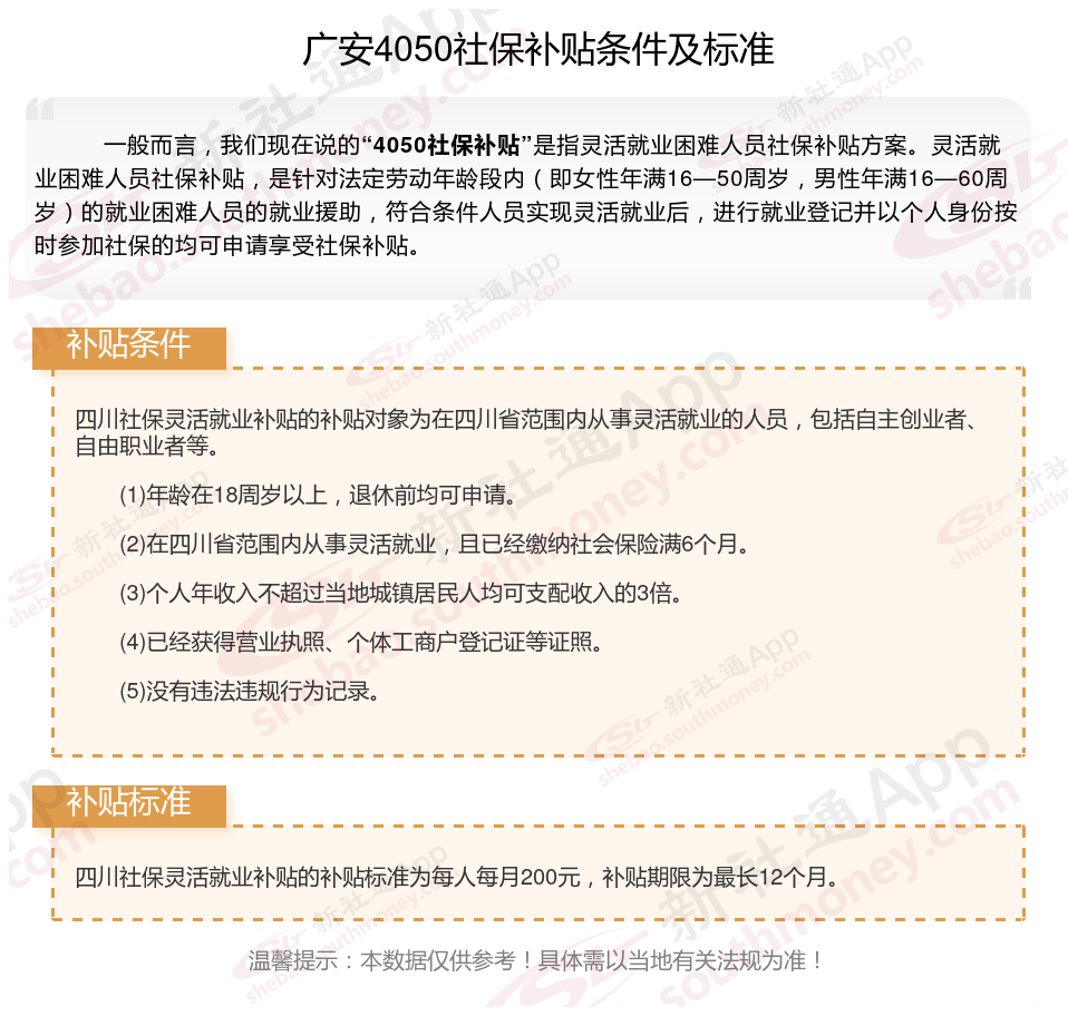 二、广安4050社保补贴新规2025年最新标准,2025年广安4050社保补贴条件是什么?