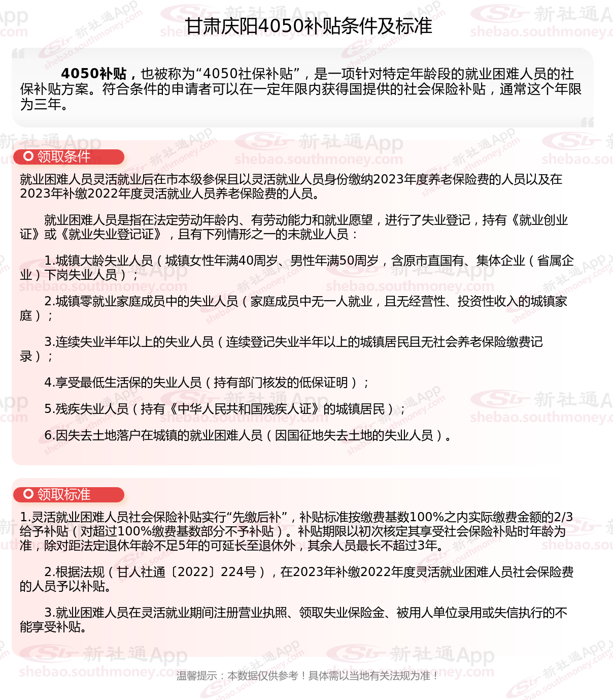 以上就是甘肃庆阳4050灵活就业困难人员社保补贴的相关内容,欢迎关注新社通/下载新社通APP了解更多五险一金专业资讯。