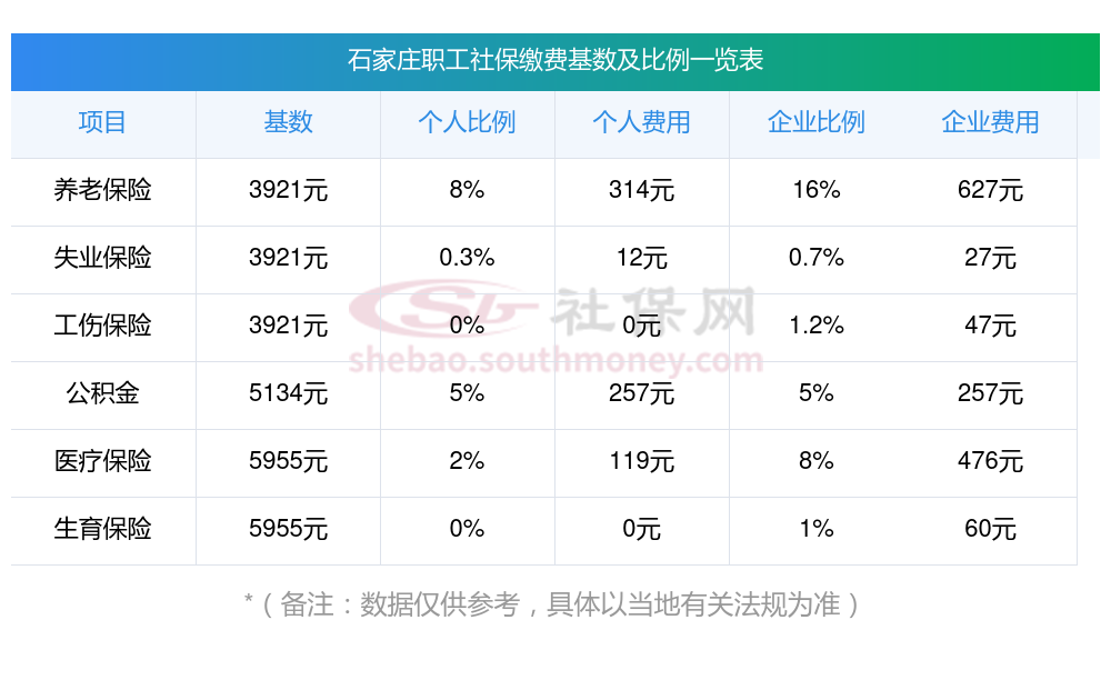 石家庄职工社保缴费基数是多少钱一个月?