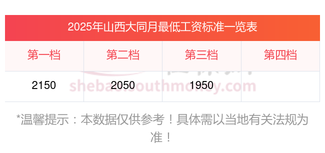 山西大同最低工资标准是多少?山西大同最低工资标准如下:
