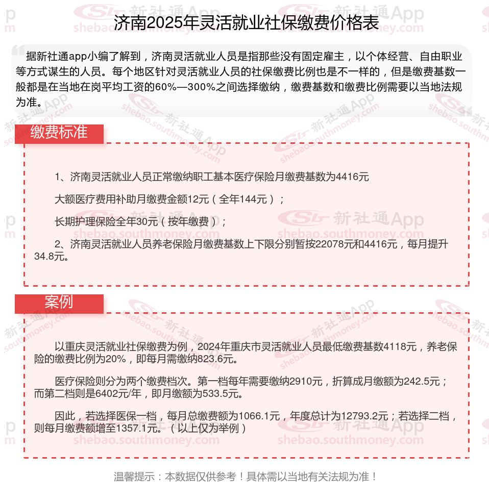 以上就是济南灵活就业社保缴费的全部内容,数据及内容供参考!希望对你有帮助,欢迎关注新社通app解锁更多社保专业资讯。