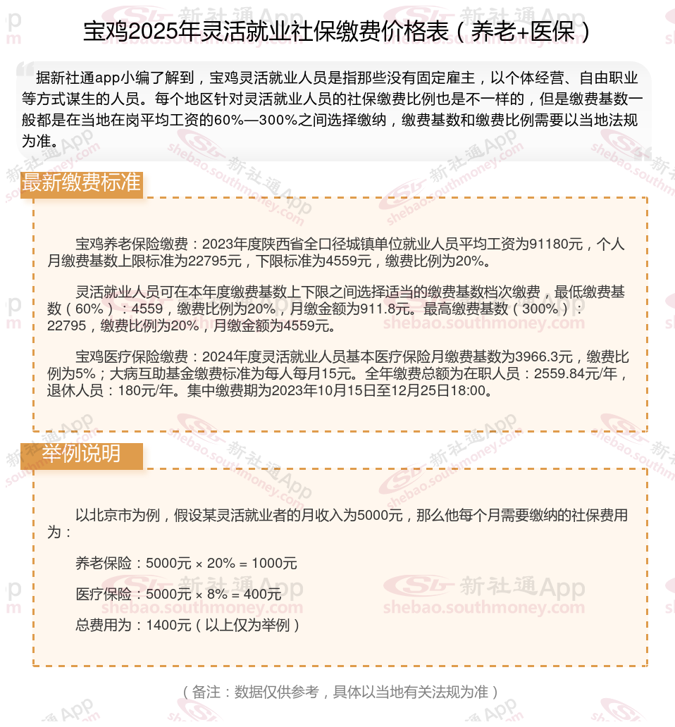 宝鸡灵活就业社保每月交多少钱?灵活就业社保养老/医保缴费标准(基数+比例)最新消息
