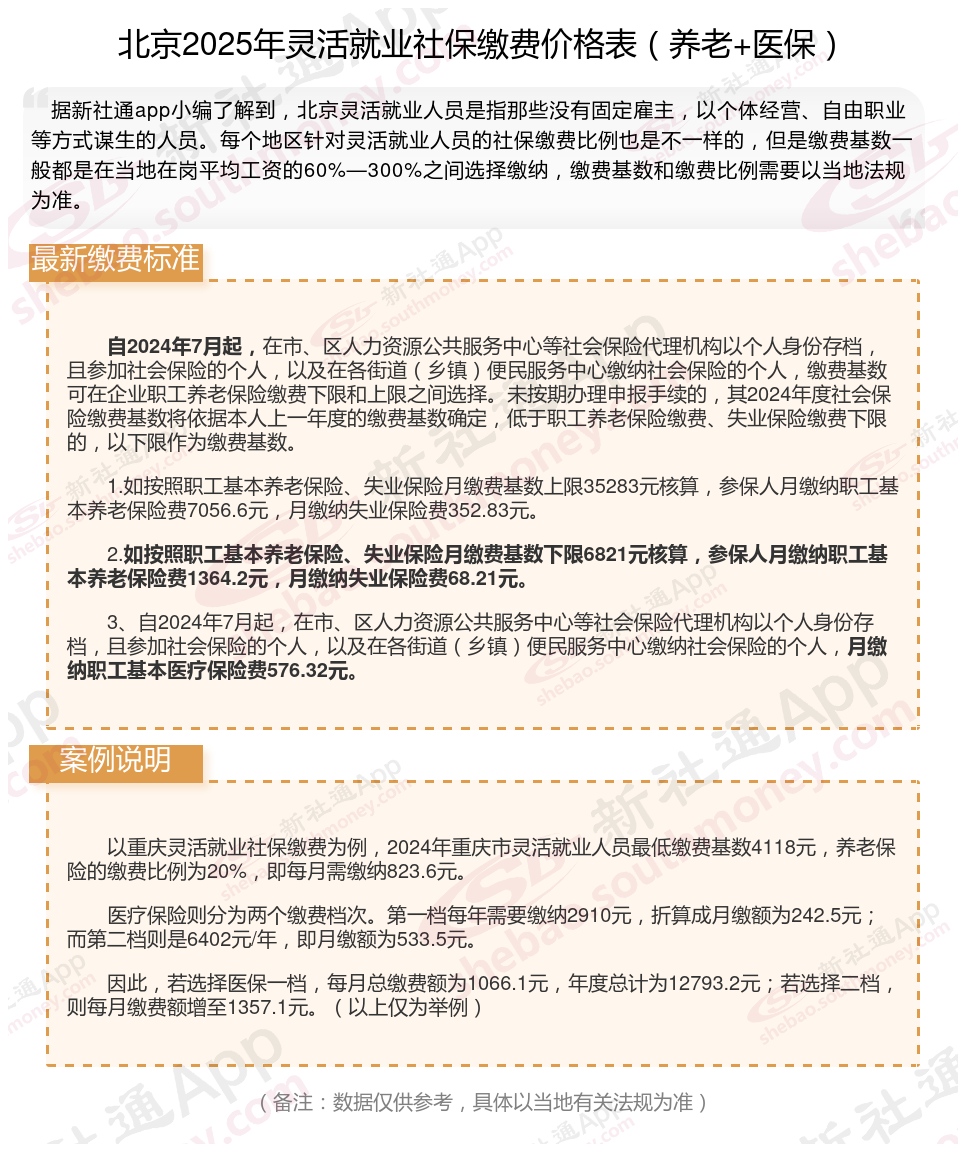 2025年灵活就业社保最低要交多少钱?灵活就业人员社保缴费最新明细来了~根据新社通app-社保缴费查询工具提供的2025社保缴费标准详情数据: