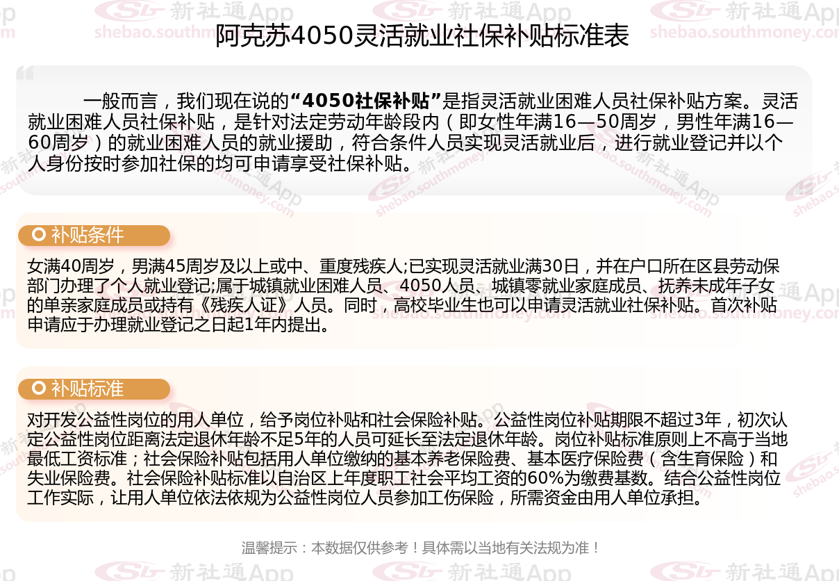 以上就是阿克苏4050灵活就业社保补贴的相关内容,欢迎关注新社通/下载新社通APP了解更多五险一金专业资讯。