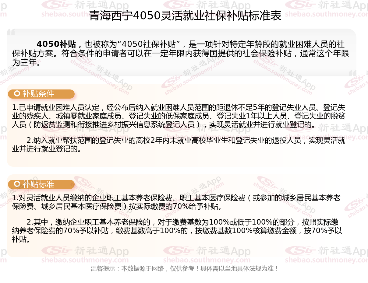 一、2025年青海西宁4050社保补贴标准及条件来了