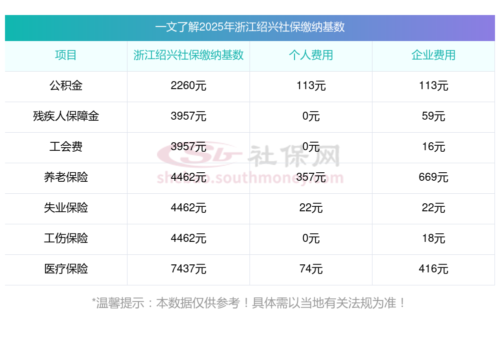 (1)据新社通小编了解到,社保缴费基数的确定,以职工上一年度月平均工资为主,结合当地社会平均工资60%至300%的上下限来完成调整。 目前,浙江绍兴社保缴费基数为:4462.00,个人费用约为:356.96元,企业费用约为:669.3元。