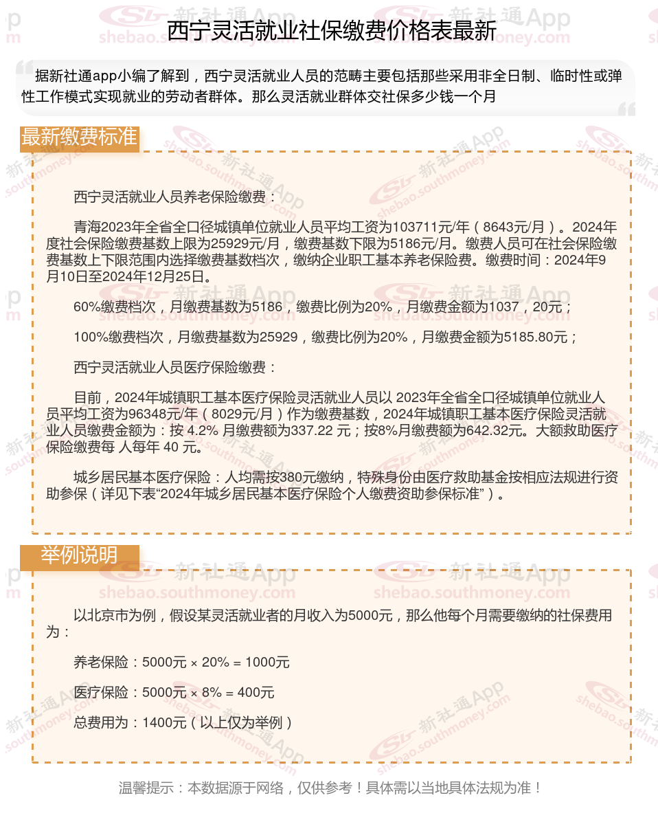 以上就是带来西宁灵活就业社保缴费标准相关知识,内容供参考,希望对你有帮助,欢迎关注/下载新社通APP解锁更多社保专业资讯。