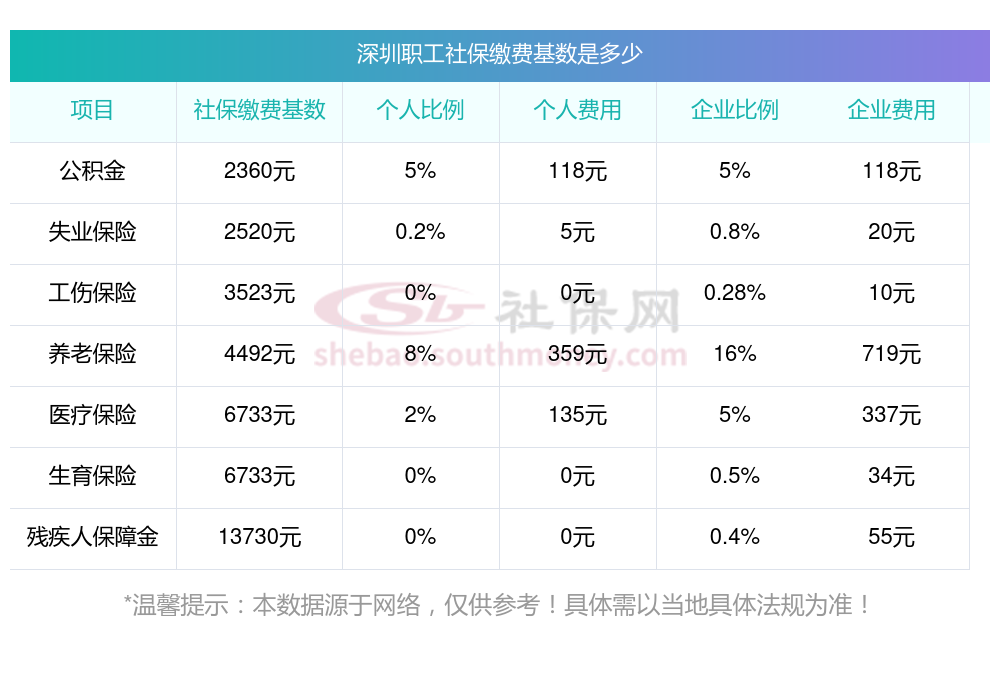 据新社通app小编了解,深圳社保缴费基数参照为3579.00,深圳社保最低一个月要交多少钱?如下: