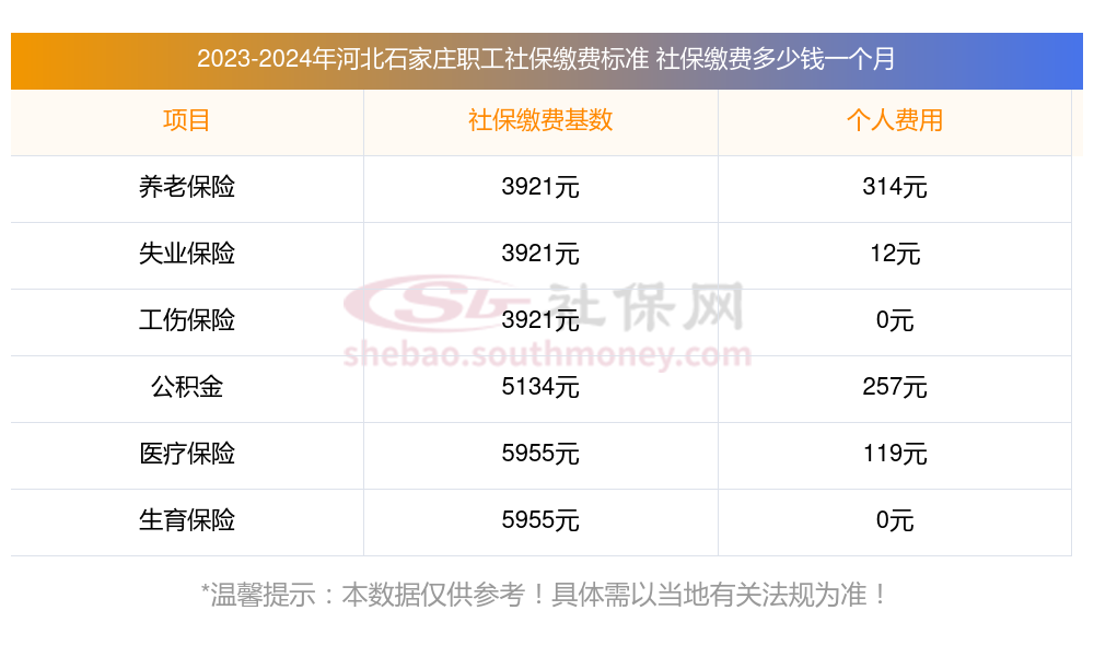 河北石家庄职工社保缴费基数是多少,2024年河北石家庄社保缴费最新标准参照如下:
