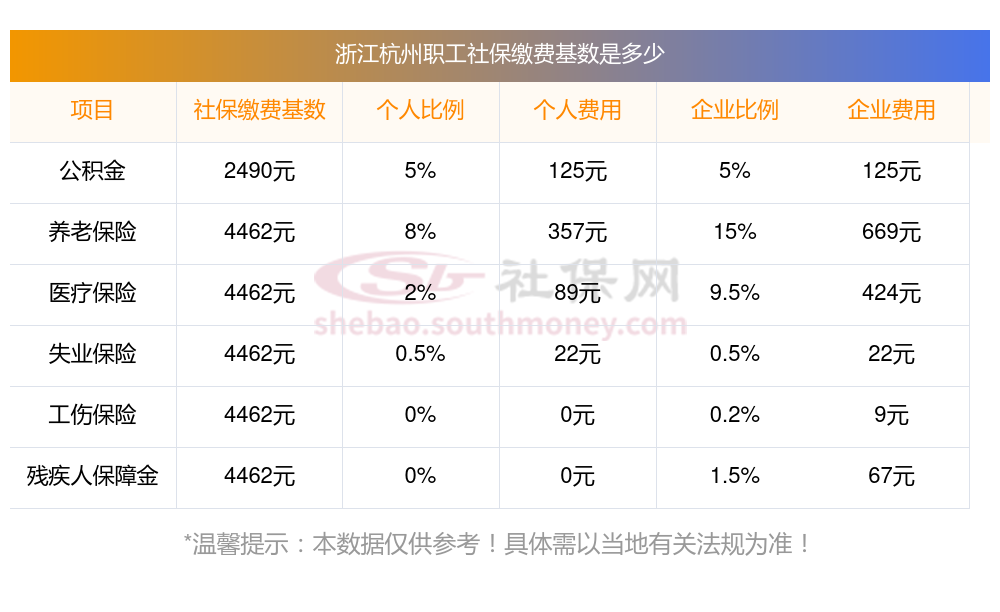 一、浙江杭州职工社保缴费基数是多少钱一个月?职工社保缴纳标准是多少?