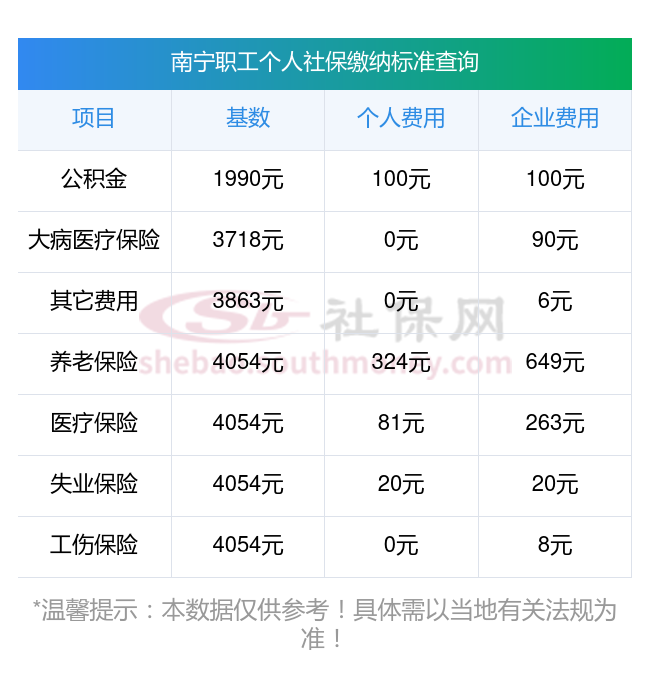 缴费基数、缴费比例以及当地公布的具体法规等,都是确定社保缴费金额的重要因素。那么,2024-2025年南宁社保缴费基数公布!个人要交多少钱?如下:
