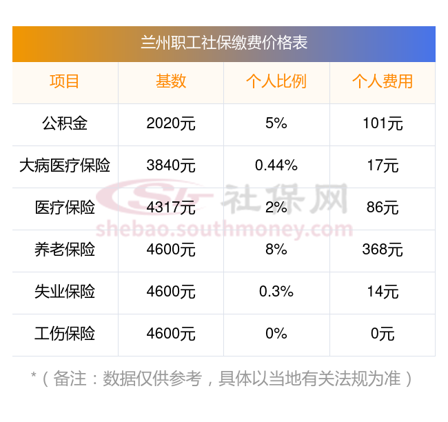 五险一金扣多少?你知道吗?下表是2024-2025年兰州社保费用明细参考,新社通app-社保缴费查询工具提供的最新数据如下: