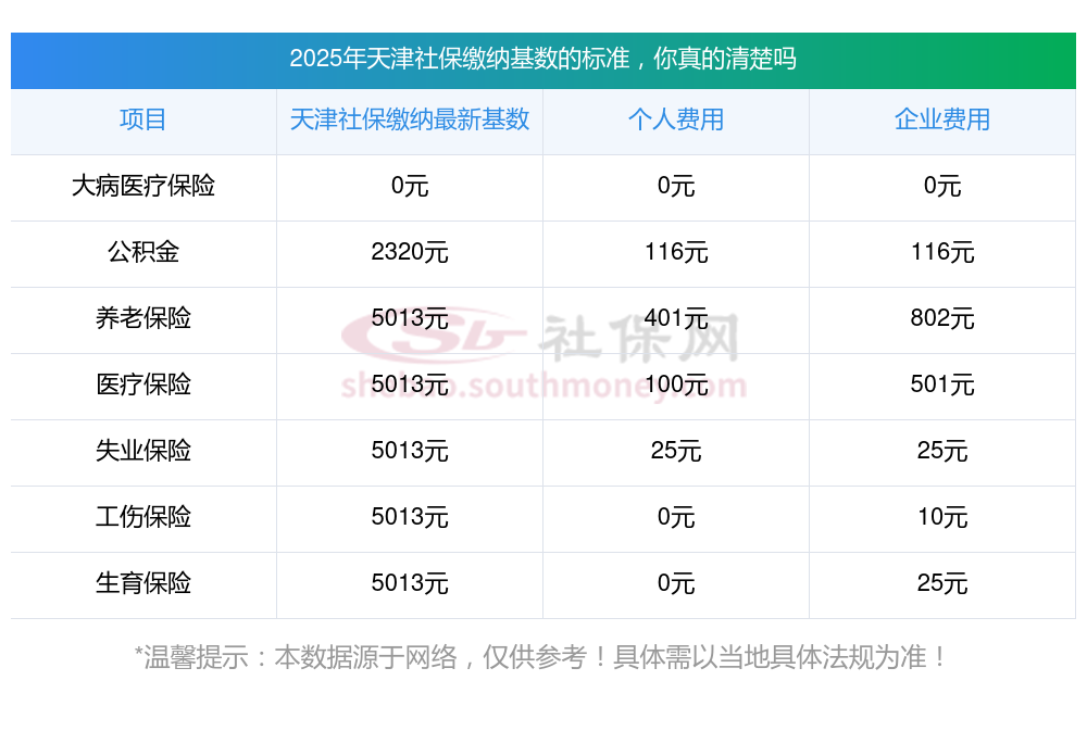 据新社通app-查阅了解到,计算社会保险费缴纳工资基数所依据的社保基数,以职工上一年1月至12月期间全部工资性收入所得的月平均额来确定。 目前该天津社保的缴费基数为:5013.00,个人费用约为:401.04元,企业费用约为:802.08元。