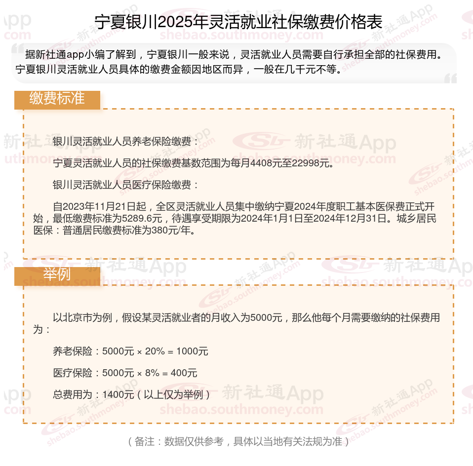 宁夏银川灵活就业社保缴费标准来了 灵活就业人员保险一个月交多少钱?根据新社通app-社保缴费查询工具提供的最新数据如下: